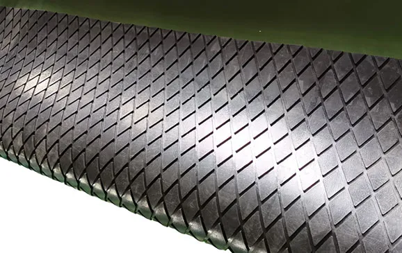 Ромбовидный рисунок: Ромбовидный рисунок значительно увеличивает трение с конвейерной лентой, эффективно предотвращая проскальзывание, и подходит для высокоскоростных и влажных условий.